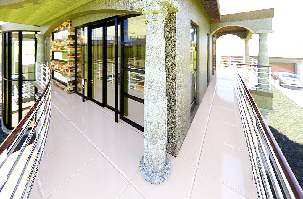 This modern two-story residence combines elegance and functionality with large glass panels and spacious balconies. The central entrance features striking floor-to-ceiling windows, welcoming natural light and offering a peek inside. Ample garage space and open outdoor areas make it ideal for families, while the seamless indoor-outdoor design allows for a comfortable, luxurious lifestyle integrated with scenic views.