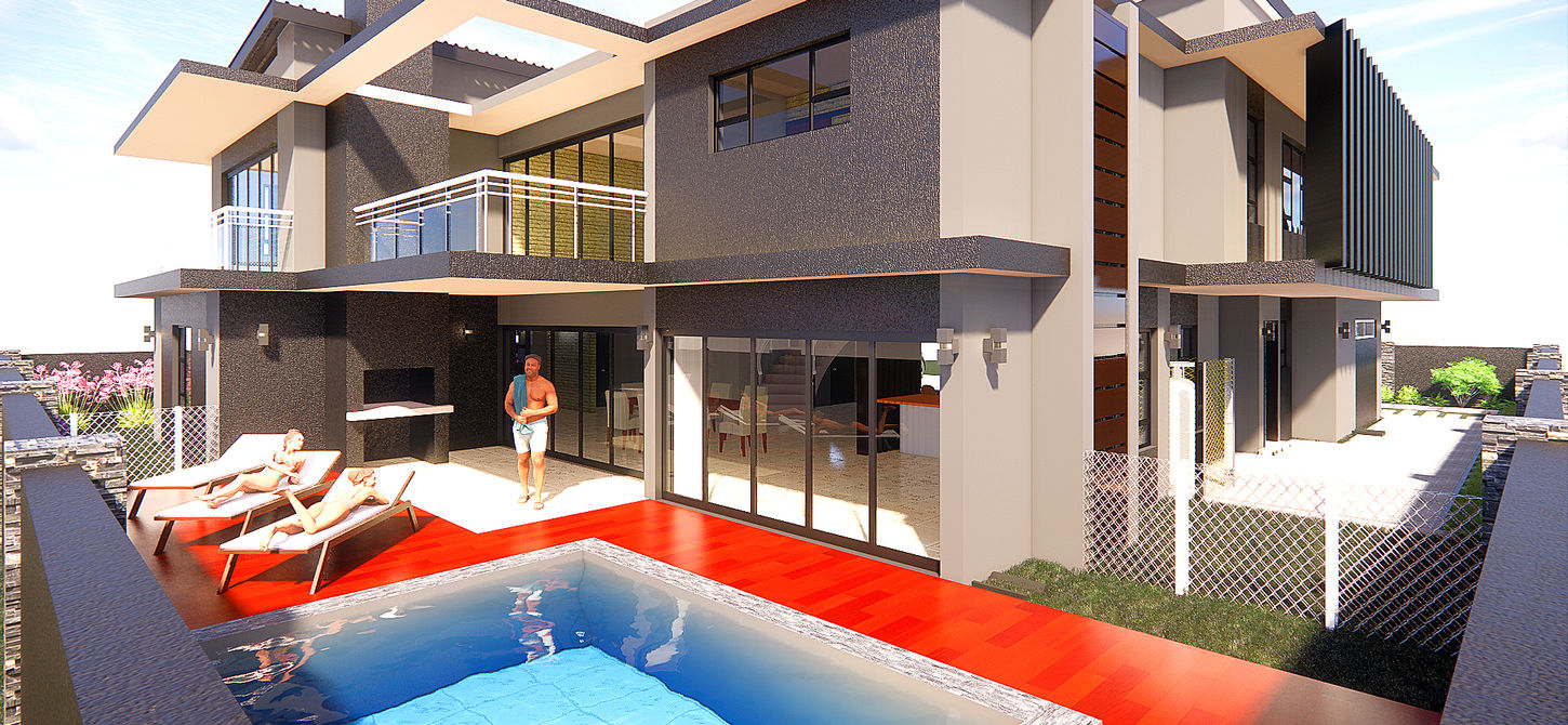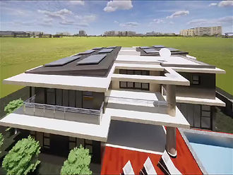 This modern two-story residence combines elegance and functionality with large glass panels and spacious balconies. The central entrance features striking floor-to-ceiling windows, welcoming natural light and offering a peek inside. Ample garage space and open outdoor areas make it ideal for families, while the seamless indoor-outdoor design allows for a comfortable, luxurious lifestyle integrated with scenic views.